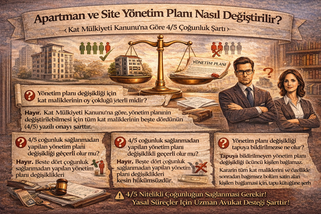 Uygulamada yöneticilerin hukuka aykırı biçimde seçildiği ya da geçersiz kararların alındığı çok sayıda örnekle karşılaşılmaktadır. Özellikle İstanbul’un Pendik, Maltepe, Tuzla, Kartal ve Kocaeli’nin Gebze gibi hızla gelişen bölgelerinde, büyük sitelerde bu çoğunluk hesapları karmaşıklaşabilmektedir. Sayı ve arsa payı çoğunluğunun yanlış hesaplanması, alınan tüm kararların iptali riskini doğurabilir. Bu nedenle, sürecin başında bir kat mülkiyeti hukuku uzmanı avukat tarafından Pendik, Maltepe, Tuzla, Kartal gibi ilçelerde destek alınması önemlidir.