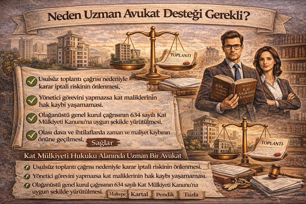 Özellikle İstanbul gibi büyük şehirlerde; Maltepe, Kartal, Pendik, Tuzla başta olmak üzere çok sayıda bağımsız bölümün bulunduğu apartman ve sitelerde süreçler daha karmaşık hâle gelmektedir. Toplantı çağrısının yazılı yapılması, gündemin doğru belirlenmesi, 15 günlük çağrı süresine uyulması, çoğunlukların doğru hesaplanması ve alınan kararların hukuka uygun şekilde tutanak altına alınması büyük önem taşır.