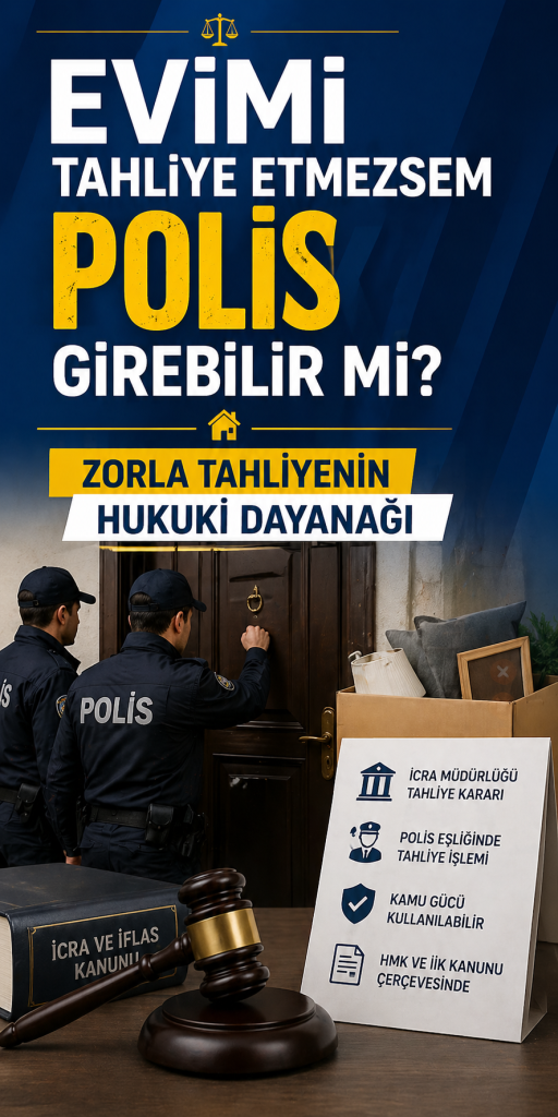 6306 Sayılı Kanun’un 5/4. maddesi ve Uygulama Yönetmeliği’nin 8/5. maddesi uyarınca riskli yapının tahliyesi engellenmesi halinde, Başkanlık veya İdare’nin yazılı talebi ve mülki idare amirinin yazılı izniyle kolluk kuvvetleri kapalı kapıları açarak zorla tahliye gerçekleştirebilir. Bu yetki hâkim kararı gerektirmemekte; yalnızca mülki idare amirinin yazılı izni yeterli olmaktadır. Tahliyeyi engelleyen kişiler hem cebren tahliye edilmekte hem de TCK kapsamında suç duyurusuna muhatap kalmaktadır. Sürecin tek yasal durdurma aracı, yürütmeyi durdurma talepli iptal davasıdır. Bu nedenle tebligat alındığı andan itibaren zaman kaybetmeden uzman bir kentsel dönüşüm avukatına başvurmak, hem hak kayıplarını önlemenin hem de süreci en etkin biçimde yönetmenin tek yoludur. (K. Md. 5/4 — Y. Md. 8/5 — K. Md. 6/9)