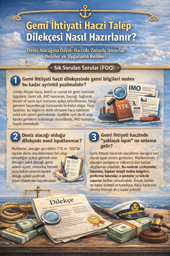 Gemi ihtiyati haczi, deniz ticaretinde alacakların korunması açısından en etkili hukuki araçlardan biridir. Ancak bu yolun başarıyla işletilebilmesi, haciz talep dilekçesinin eksiksiz, doğru hukuki dayanaklara oturtulmuş ve yaklaşık ispat şartını karşılayacak şekilde hazırlanmasına bağlıdır. Uygulamada, şekli eksiklikler veya hatalı kurgulanan dilekçeler nedeniyle çok sayıda haciz talebi reddedilmektedir.