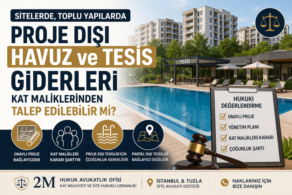 Toplu yapı statüsüne geçmemiş sitelerde, proje dışı tesisler, aidat yükümlülüğü ve kat maliklerinin sorumluluğu son derece teknik ve Yargıtay içtihatlarıyla şekillenen bir alandır. Bu tür uyuşmazlıklarda yanlış bir ödeme veya eksik hukuki itiraz ciddi hak kayıplarına yol açabilir.